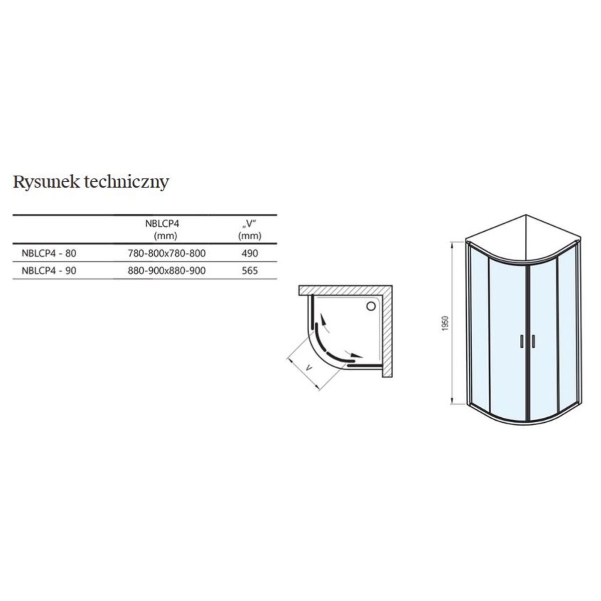 Die Duschkabine besteht aus zwei geraden festen Teilen und zwei gebogenen Teilen, die die Schiebetür bilden. Montage in einer fertigen Ecke des Badezimmers auf einer Ravak-Duschwanne: Ronda, Ronda Basic, Elipso, Elipso Pro, Elipso Pro Flat, Elipso Pro Chrome oder direkt auf dem Boden mit eingebautem Linienablauf oder Ablaufrost.