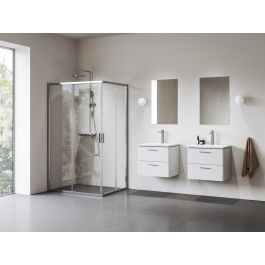 1/2 Eckduschkabine Blix II in glänzendem Chrom mit transparenter Glasfüllung und Ravak AntiCalc®-Schutzbeschichtung. Schiebeöffnungssystem.