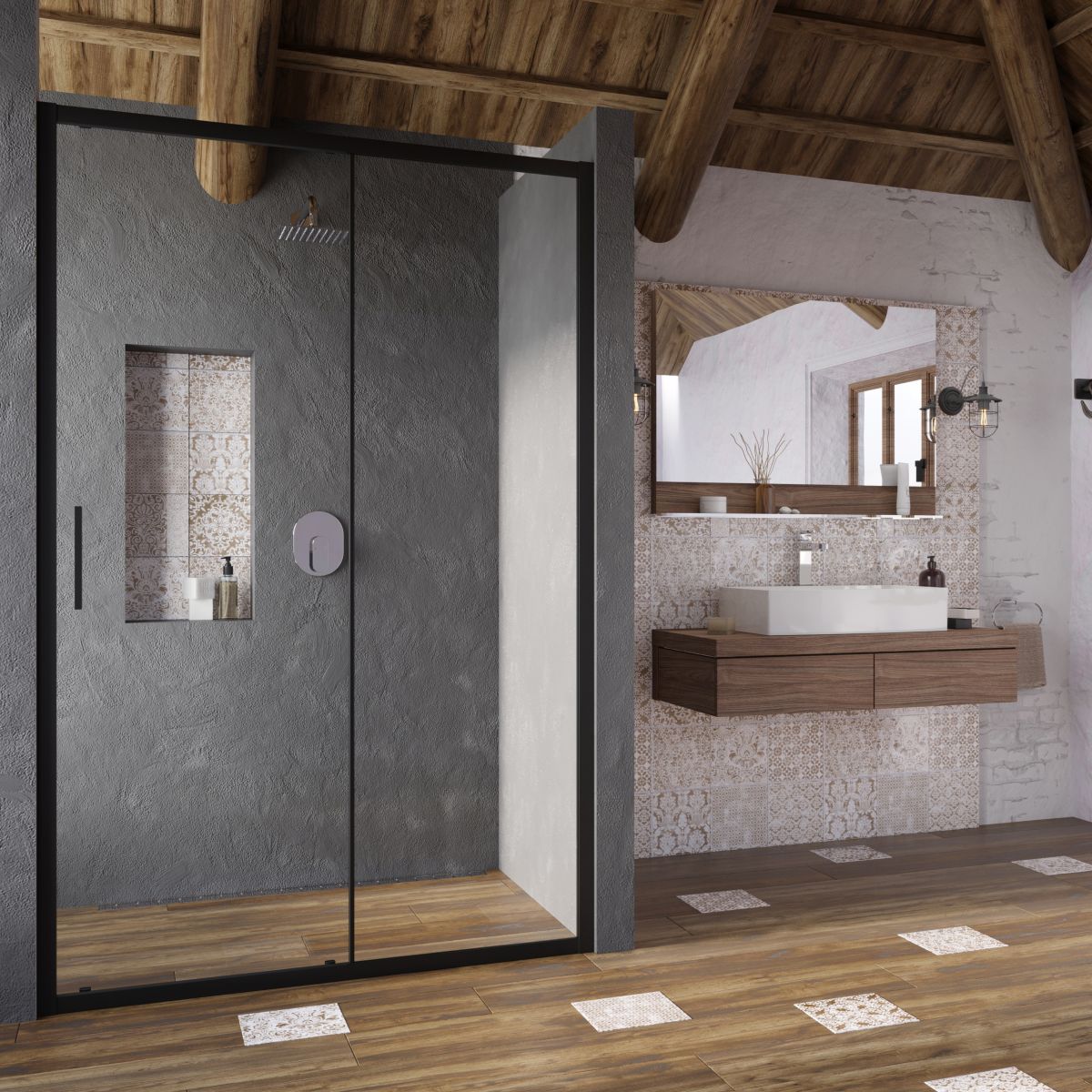 - Breite: 120 cm (Einstellbereich in der Nische: 117,7-120,5 cm, Einstellbereich bei Verwendung mit Seitenwand: 119-121,8 cm)