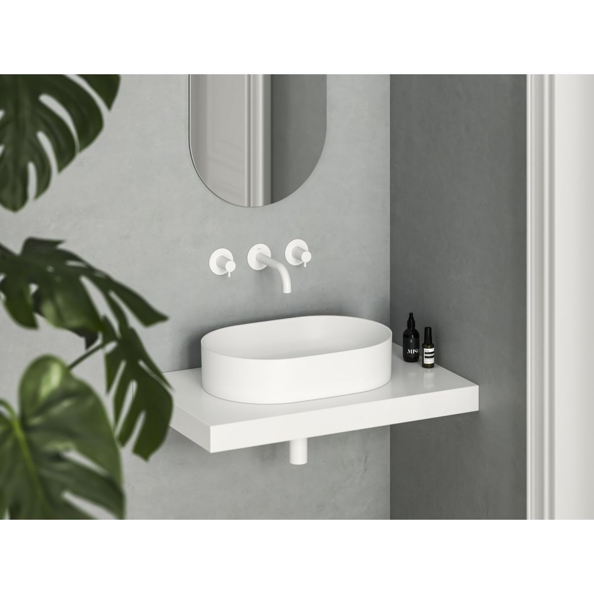 Dünnwandiges Keramikwaschbecken Ceramic Slim für die Montage auf einer Arbeitsplatte oder einem Schrank, ohne Überlauf. Farbe: mattweiß.