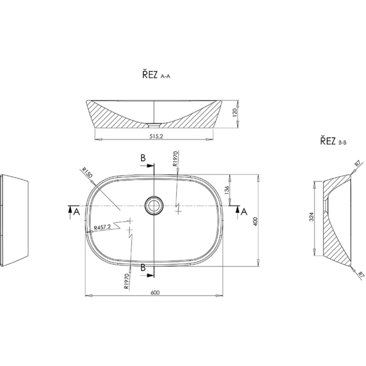 Ravak Ceramic Waschbecken 60x40 cm oval Aufsatzwaschbecken weiß XJX01160001
