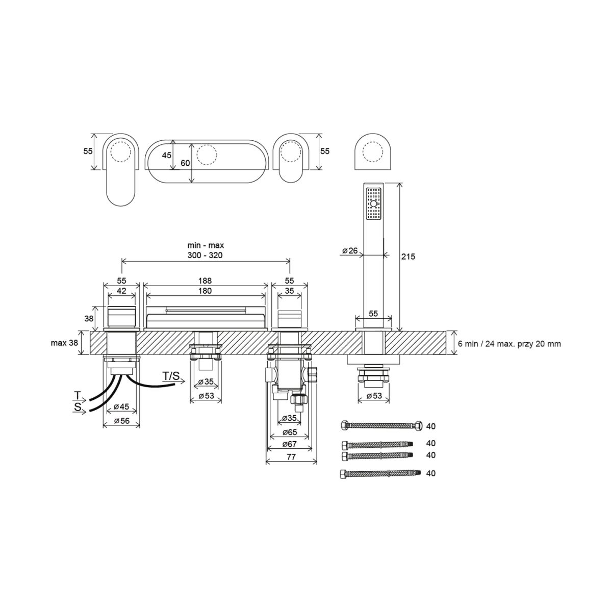 - flexible Anschlussschläuche mit einem Durchmesser von G 1/2 und einer Länge von 40 cm