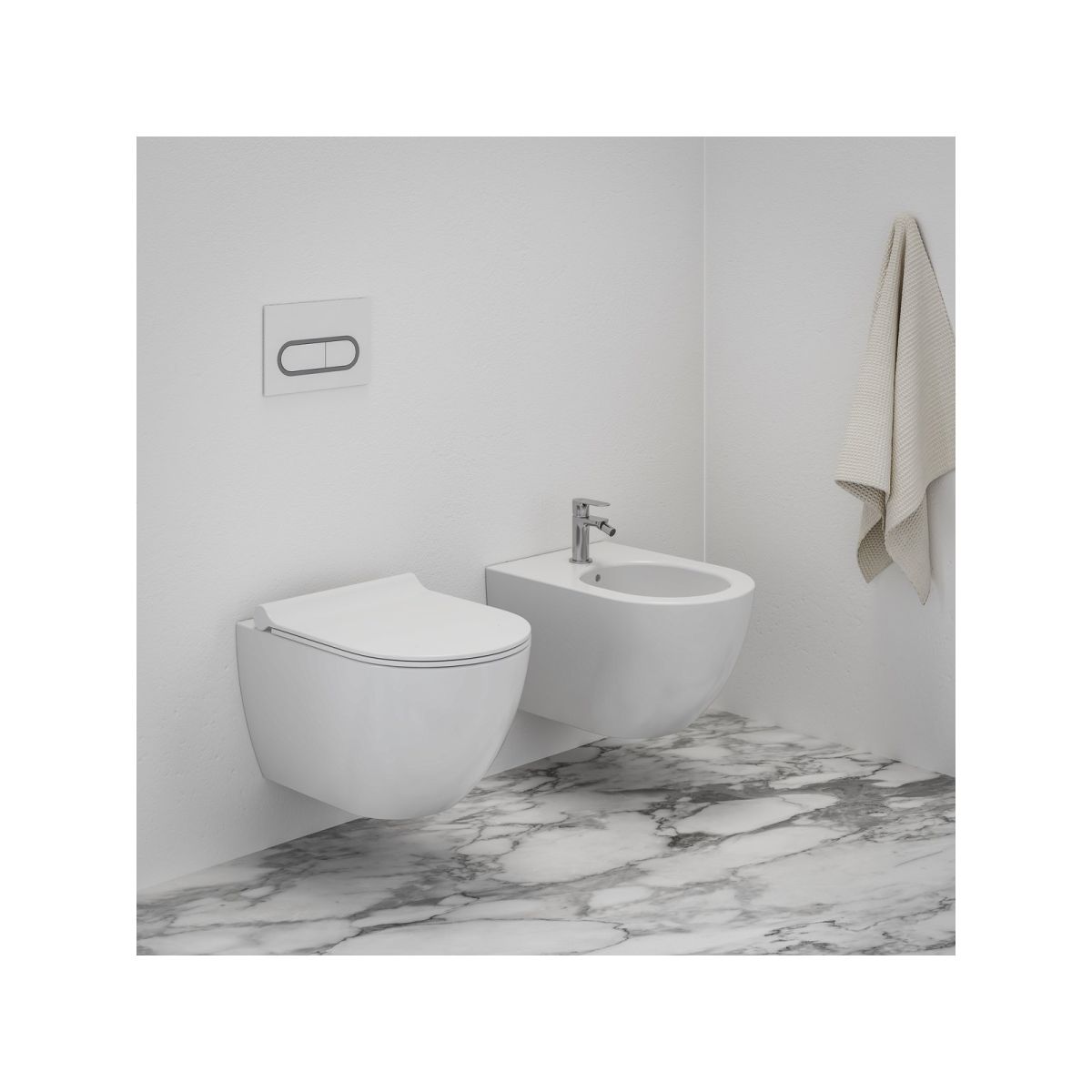 Hängendes Bidet Uni Chrome in weißer Ausführung.