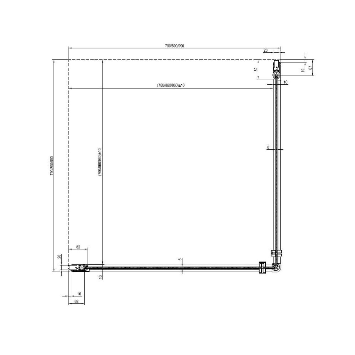 - Montage nur mit dem zweiten Teil der Tür CRV1 (80,90,100), CRV2 (80,90,100,110,120) oder der festen Wand CPS (80,90,100)