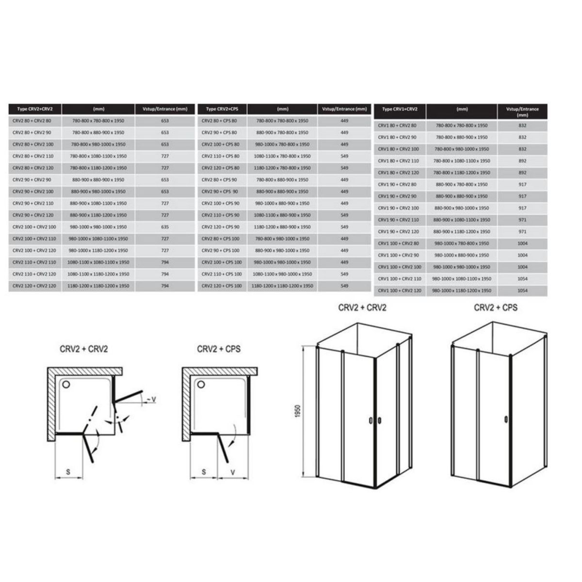 - Montage nur mit dem zweiten Teil der Tür CRV1 (80,90,100), CRV2 (80,90,100,110,120) oder der festen Wand CPS (80,90,100)