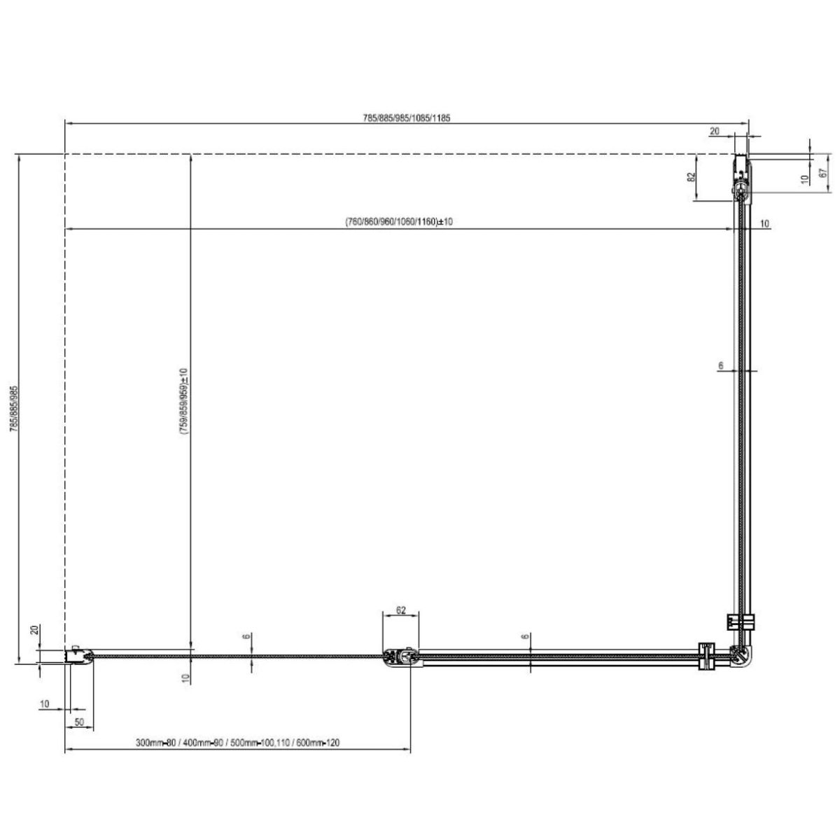 Kleine Unebenheiten im Bau? Keine Sorge – Chrome hat die Lösung. Mit seinen Profilen lässt sich die Kabine auf jeder Seite um bis zu 10 Millimeter verstellen. Sie können auch ein verlängertes Verstellprofil kaufen und die Duschkabine um zusätzliche 20 Millimeter verbreitern.