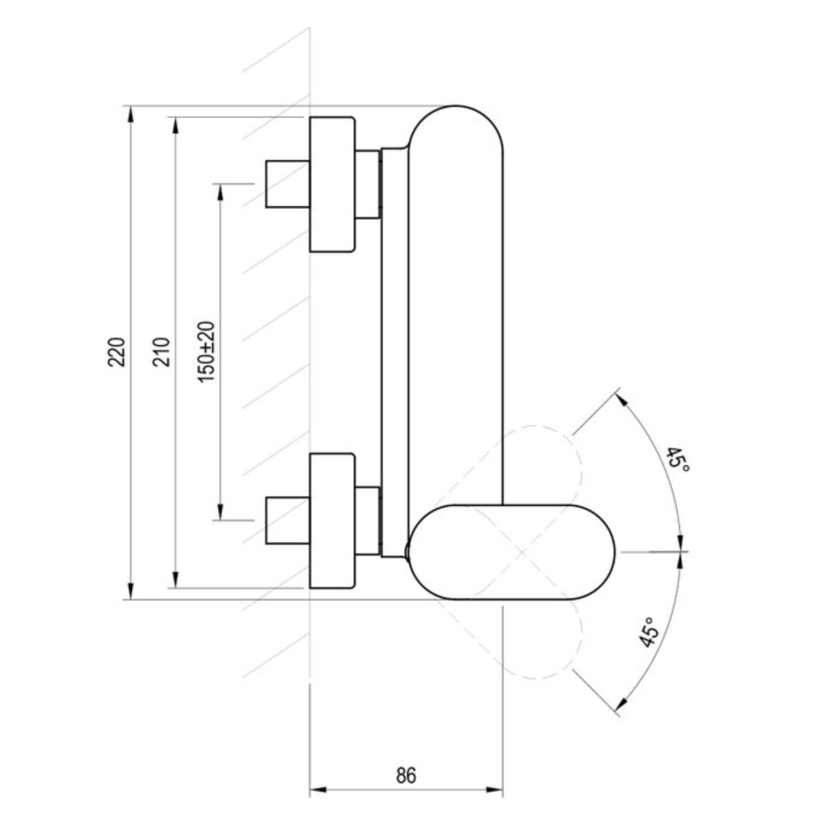 Wandmontierte Duscharmatur Chrome II, ohne Duschset.