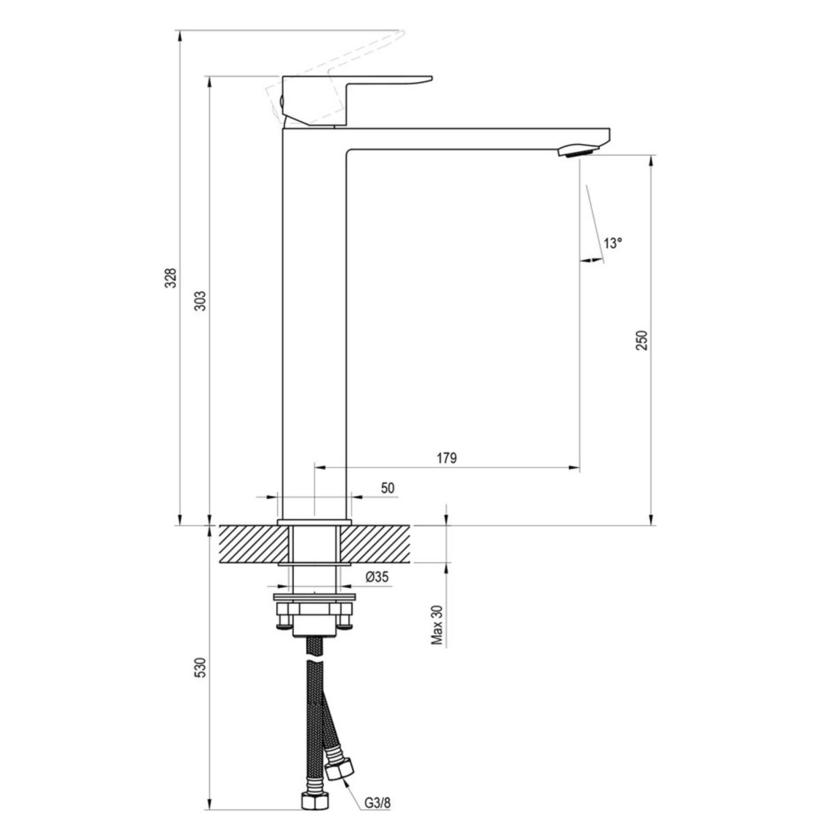 - Höhe der Armatur: 300 mm, ExtraComfort Zone – hoch