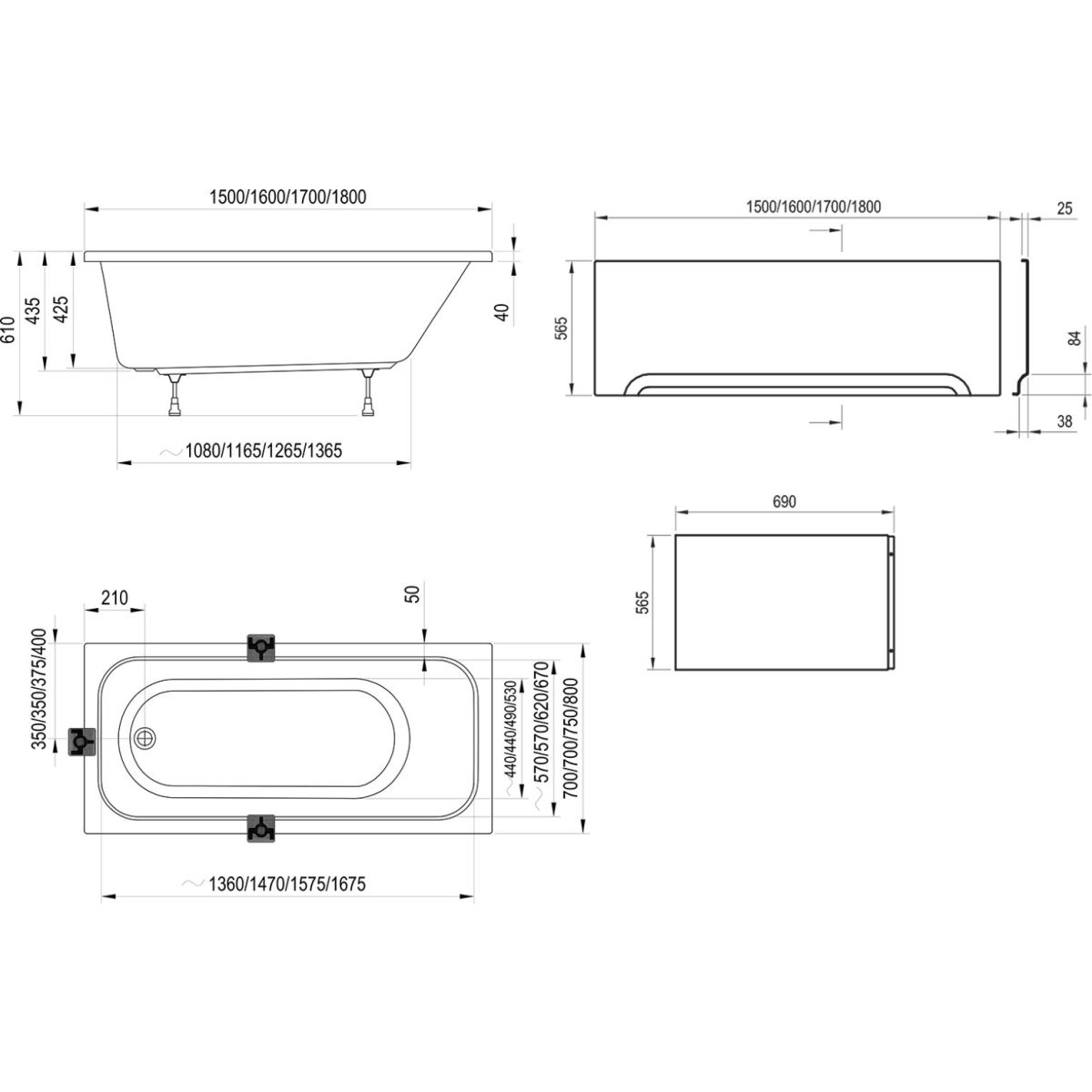 - Zusätzlich zu erwerben: Gestell, Frontblende, Abflussset für die Badewanne