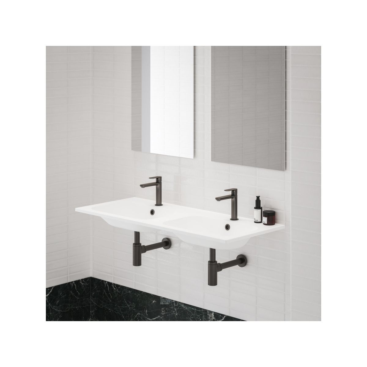 Teil des breitesten, stilistisch abgestimmten Konzepts auf dem Markt. Das Doppelwaschbecken Chrome Slim kann an der Wand montiert oder mit dem Waschbeckenunterschrank Chrome SD 1200 und zwei Spiegeln Chrome 600 ergänzt werden. Das Montageset (Dübel, Schrauben usw.) einschließlich Überlaufabdeckung ist im Lieferumfang enthalten.