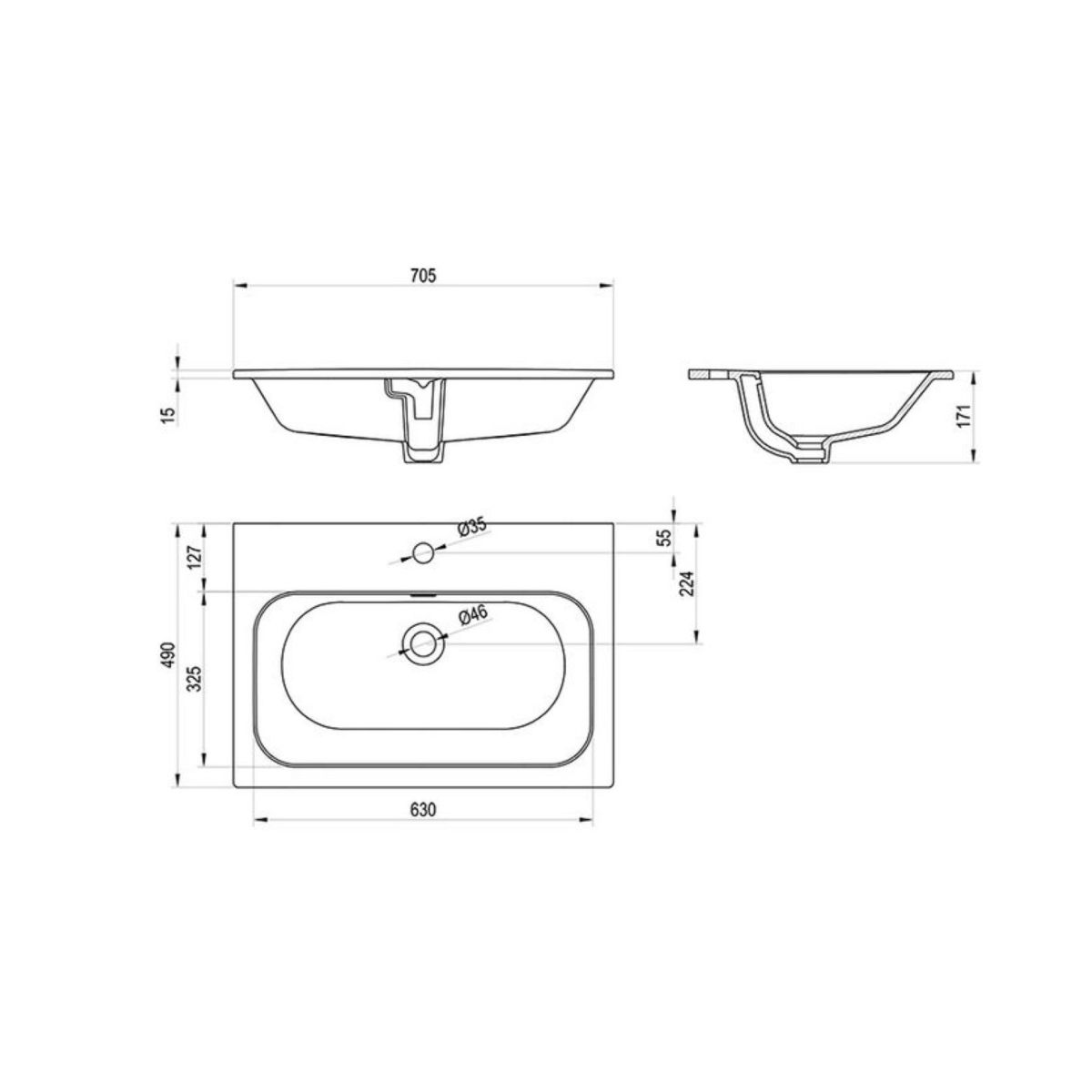 Ravak Chrome Waschbecken 70.5x49 cm rechteckig Möbel weiß XJX01170002