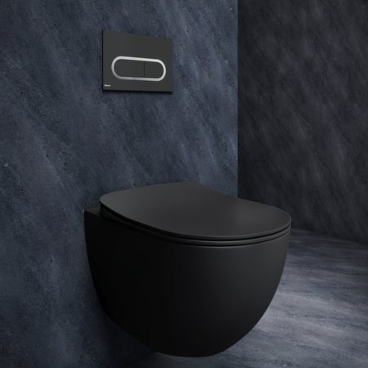 Hängendes WC Uni Chrome RimOff in schwarzer Ausführung.