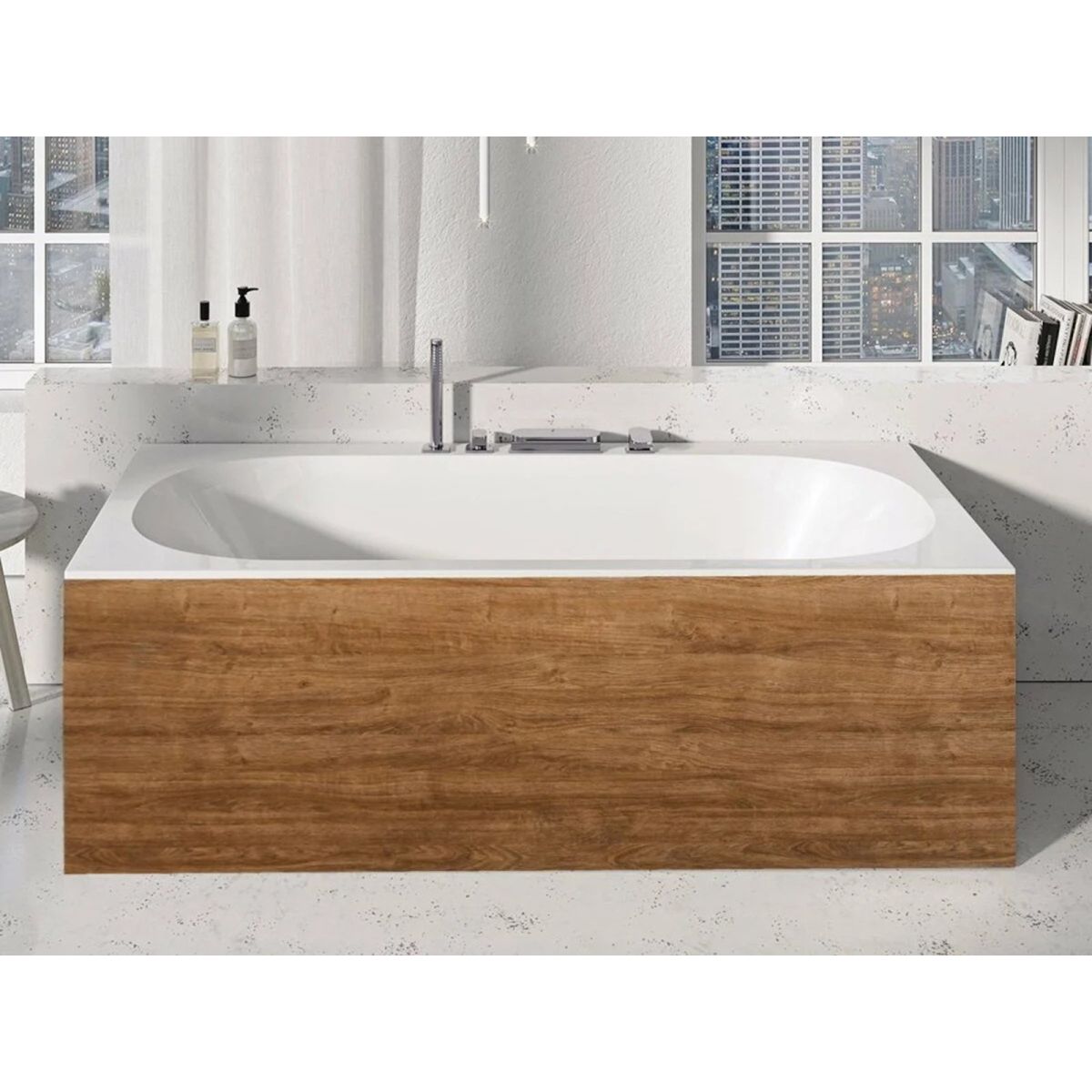 Die Badewanne kann auch seitlich mit Seitenverkleidungen verkleidet werden.