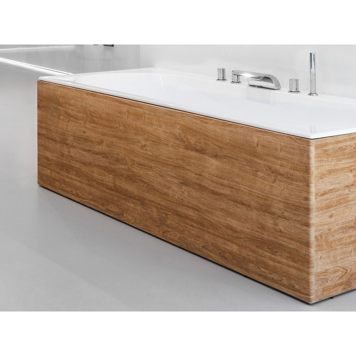 Frontblende aus MDF für rechteckige Badewannen mit einer Länge von 180 cm. In Eiche-Optik.