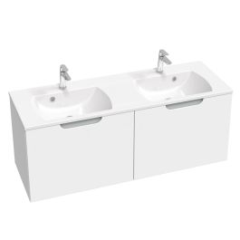 Der Unterschrank für Doppelwaschbecken SD Classic II 130 ist für das Doppelwaschbecken Classic II 130 vorgesehen. Er ist mit zwei hohen Schubladen mit viel Stauraum (40 cm hoch) mit Vollauszug und Softclose ausgestattet. Auf der rechten Seite des Schranks befindet sich zusätzlich eine integrierte niedrige Schublade – ein Organizer mit separatem Auszug. Wird montiert geliefert, einschließlich Montageset (Schrauben, Scharniere, Abdeckkappen). Der Schrank wird an der Wand montiert.