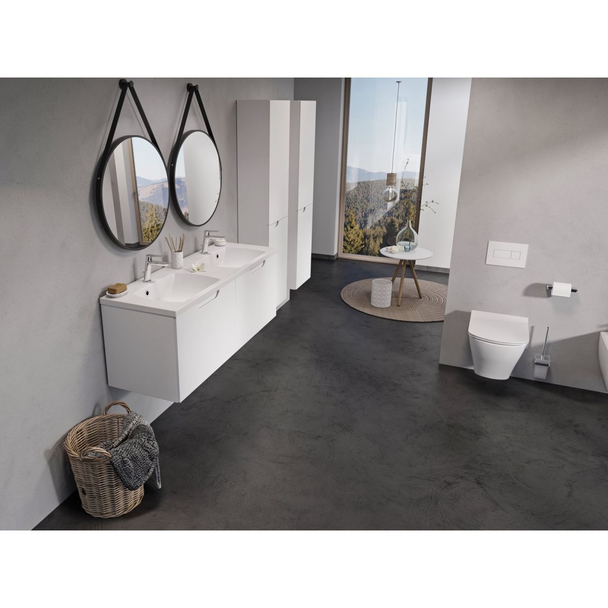 Der Unterschrank für Doppelwaschbecken SD Classic II 130 ist für das Doppelwaschbecken Classic II 130 vorgesehen. Er ist mit zwei hohen Schubladen mit viel Stauraum (40 cm hoch) mit Vollauszug und Softclose ausgestattet. Auf der rechten Seite des Schranks befindet sich zusätzlich eine integrierte niedrige Schublade – ein Organizer mit separatem Auszug. Wird montiert geliefert, einschließlich Montageset (Schrauben, Scharniere, Abdeckkappen). Der Schrank wird an der Wand montiert.