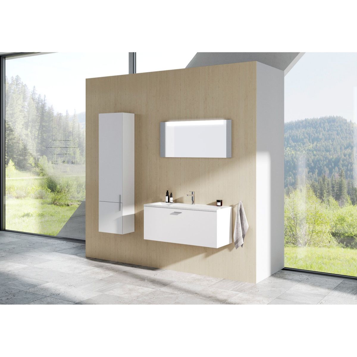 Der Waschtischunterschrank mit Schublade verstaut alles, was nicht sichtbar sein soll. Der hohe Schrank bietet Platz für alles, was Sie im Badezimmer griffbereit haben möchten.