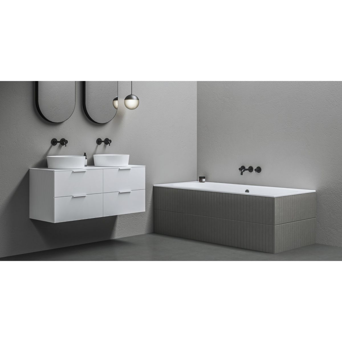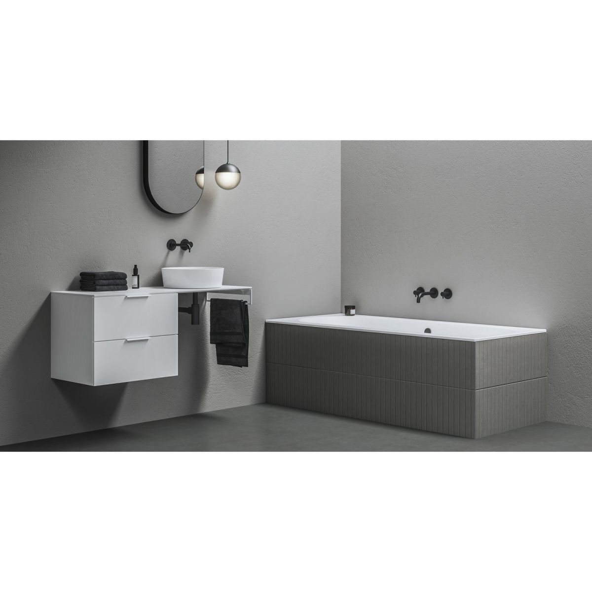 Damit Sie im Badezimmer nichts ablenkt, haben wir die Türen der hohen Schränke mit Dämpfern und die Schubladen mit einem automatischen Schließsystem mit sanftem Einzug ausgestattet.
