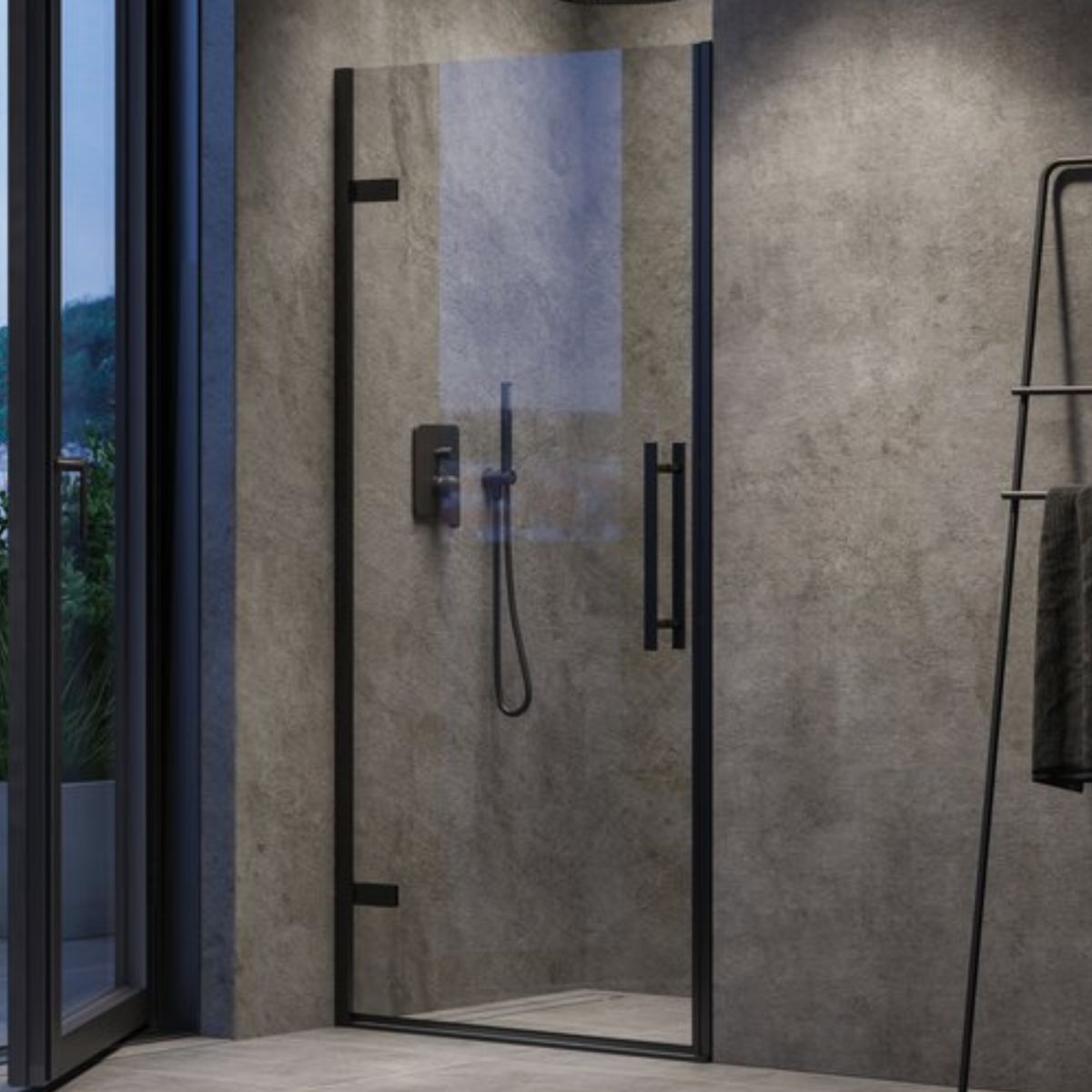 Einteilige Duschtür Cool! In schwarzer Ausführung mit transparenter Glasfüllung und Ravak AntiCalc®-Schutzschicht. Öffnungssystem mit Scharnieren. Das Produkt ist nicht in einer rechten und linken Version erhältlich.