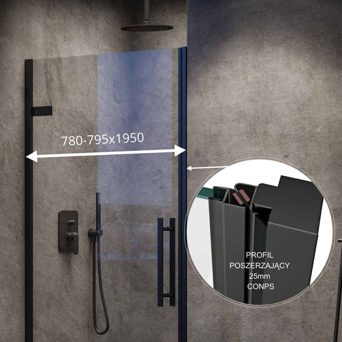 - Die Türen können mit einer festen Wand COPS (80, 90, 100) zu einer Duschkabine kombiniert werden, die Wand ist separat erhältlich!