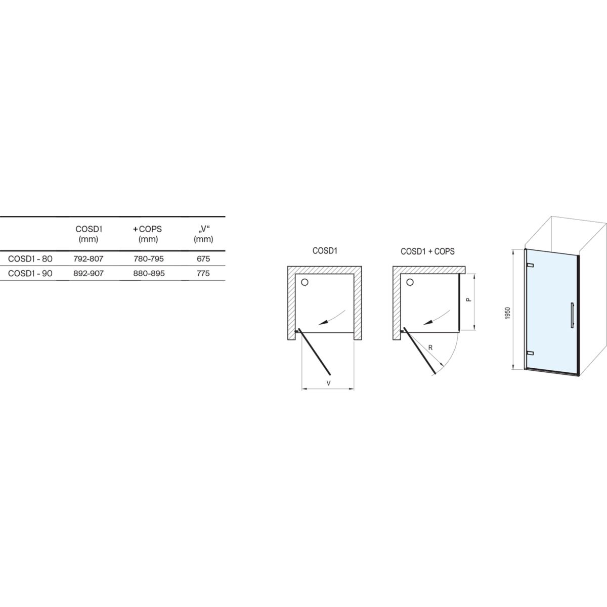 - Die Tür kann mit einer festen Wand COPS (80,90,100) zu einer Duschkabine kombiniert werden, die Wand ist separat zu erwerben!
