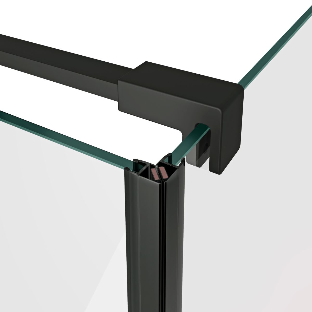 Feste Wand Cool! in schwarzer Ausführung mit Füllung aus transparentem Glas mit Schutzschicht Ravak AntiCalc®. Das Produkt ist nicht rechts- oder linksseitig.