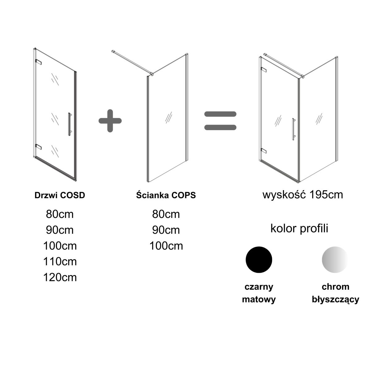 Das Produkt besteht aus einem festen Teil und ist für die Kombination mit einer Duschtür vorgesehen (es handelt sich nicht um ein eigenständiges Produkt). Das Foto zeigt die Komplettlösung. Der Preis bezieht sich nur auf die COPS-Wand.