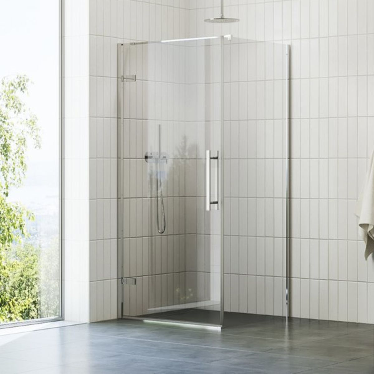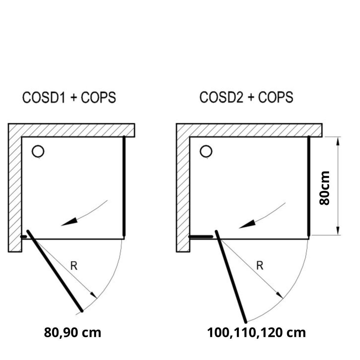 Das Produkt besteht aus einem festen Teil und ist für die Kombination mit einer Duschtür vorgesehen (es handelt sich nicht um ein eigenständiges Produkt). Das Foto zeigt die komplette Lösung. Der Preis bezieht sich nur auf die COPS-Wand.