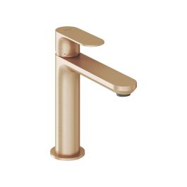 Standwaschbeckenarmatur Eleganta, ohne Stopfen. Ausführung in gebürstetem Gold. Eingebauter Perlator mit EcoFlow-Funktion.