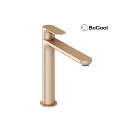 Standwaschtischarmatur Eleganta, ohne Stopfen. Ausführung in gebürstetem Gold. Eingebauter Perlator mit EcoFlow-Funktion. BeCool-Funktion zur Wassereinsparung.