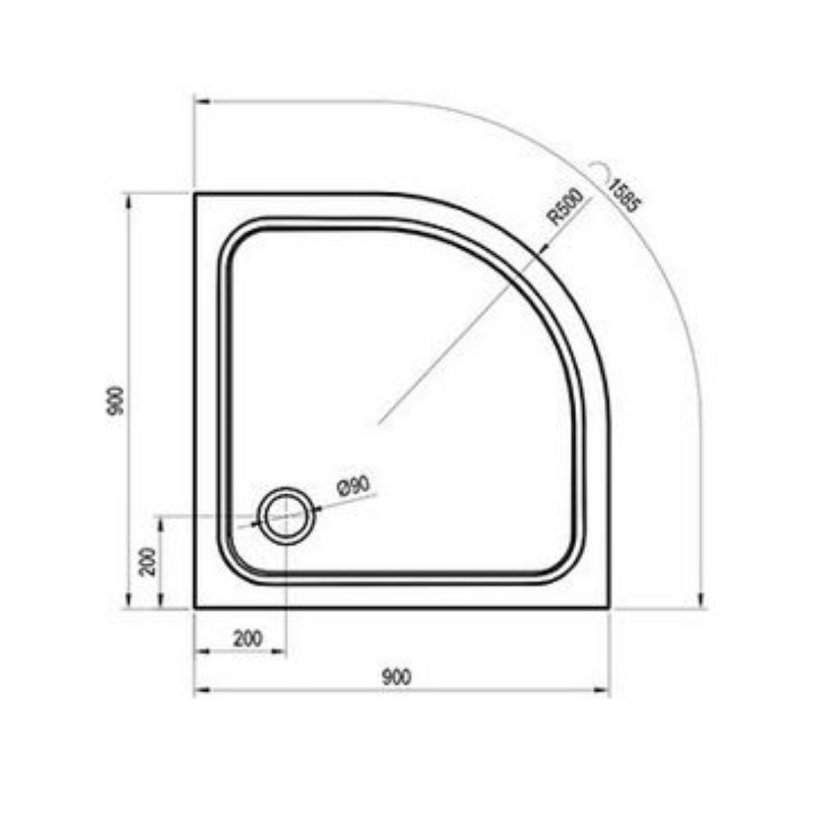 - Tiefe der Duschwanne: 1,5 cm
