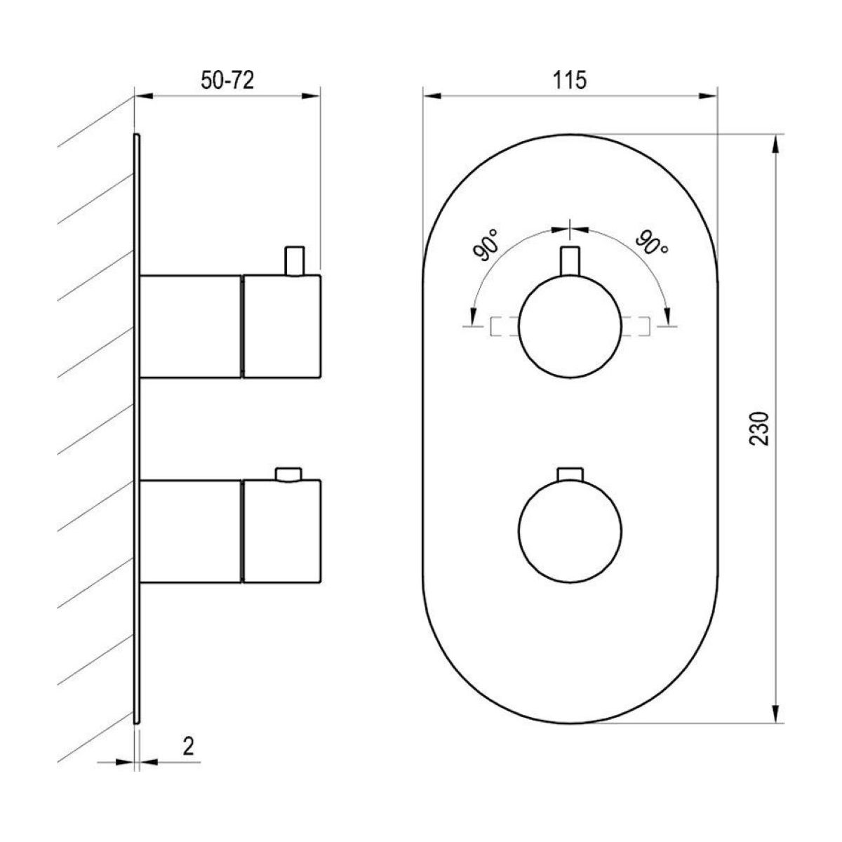 Unterputz-Thermostatarmatur Espirit, zweigleisig, für R-Box. In Chromausführung. Der Grundkörper für die Unterputzarmatur RB 07C.50 ist nicht Teil der Armatur und muss separat erworben werden!