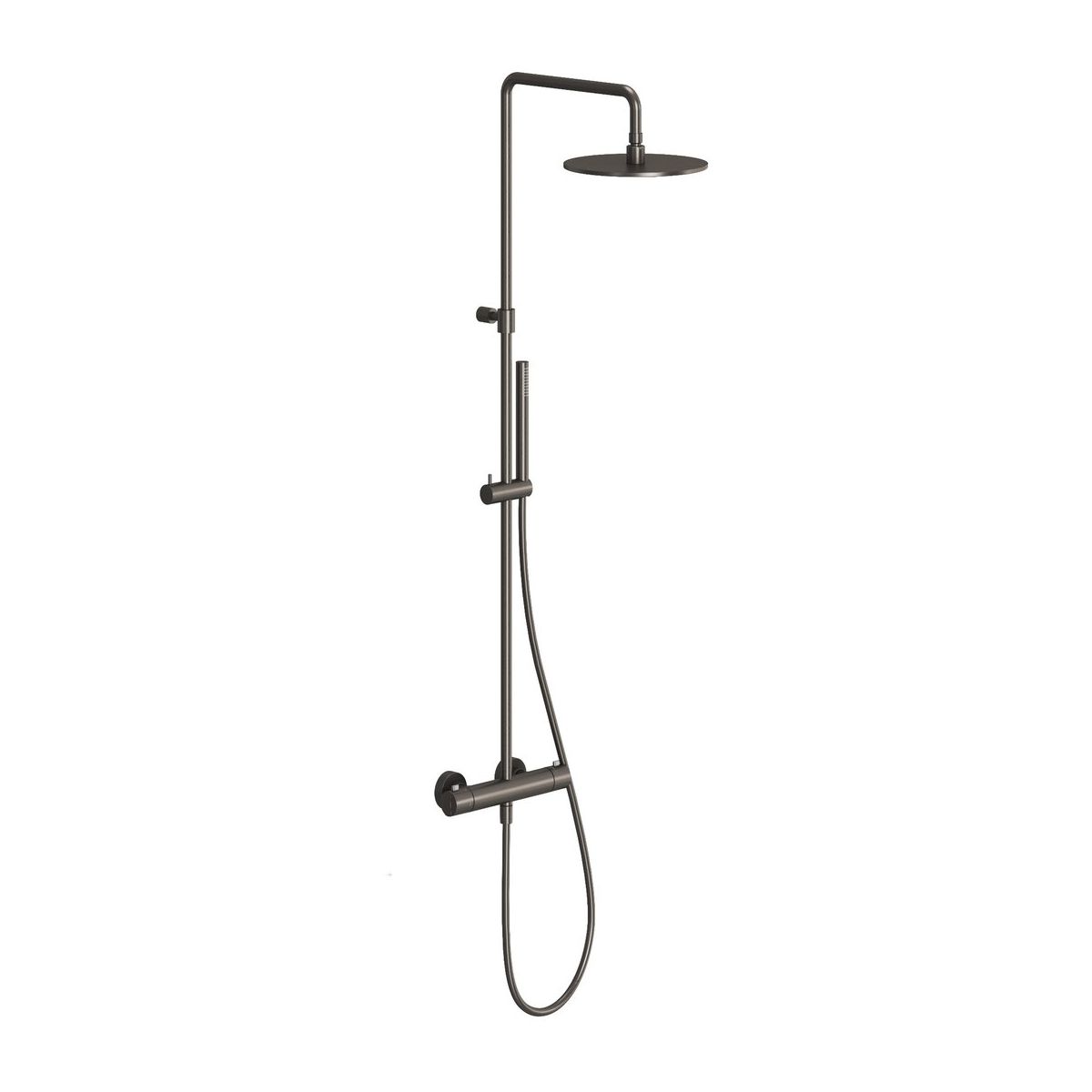 Duschsäule Espirit mit Thermostatarmatur und Duschset. Ausführung in gebürstetem Graphit.