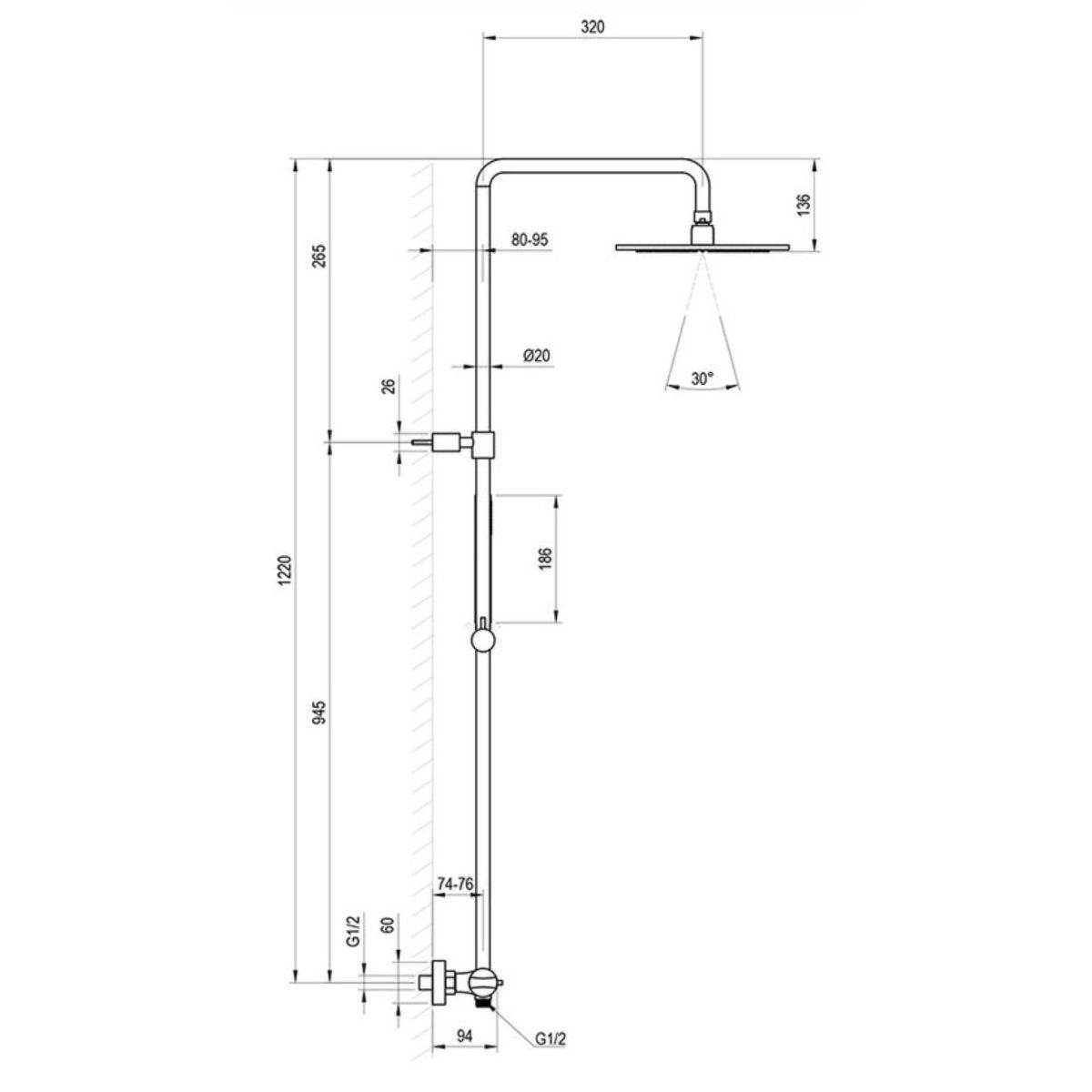 - Höhe der Thermostat-Säule: 122 cm