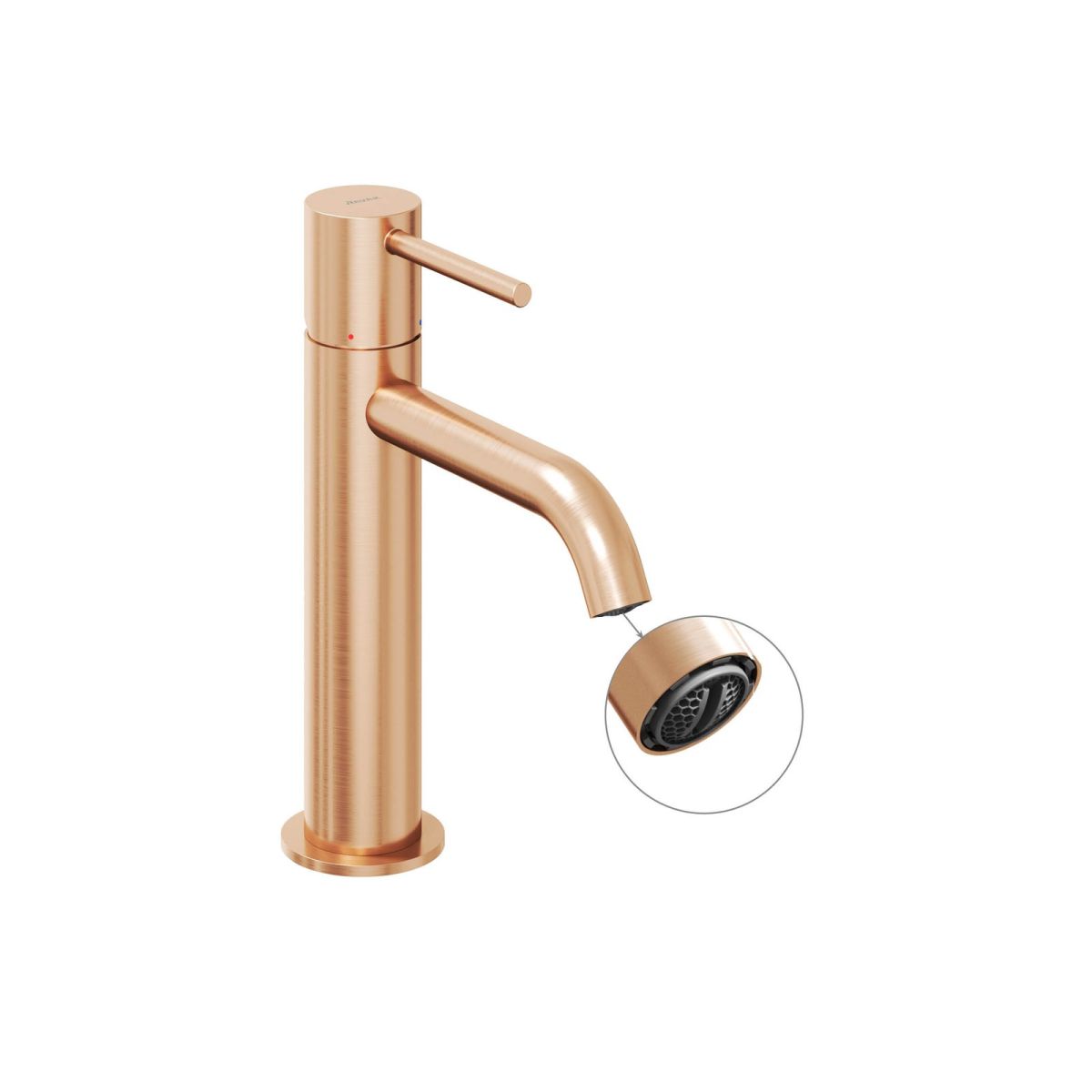Espirit Standwaschtischarmatur, ohne Ablaufgarnitur. Ausführung: Rose Gold Brushed. Mit integriertem Perlator mit EcoFlow-Funktion.