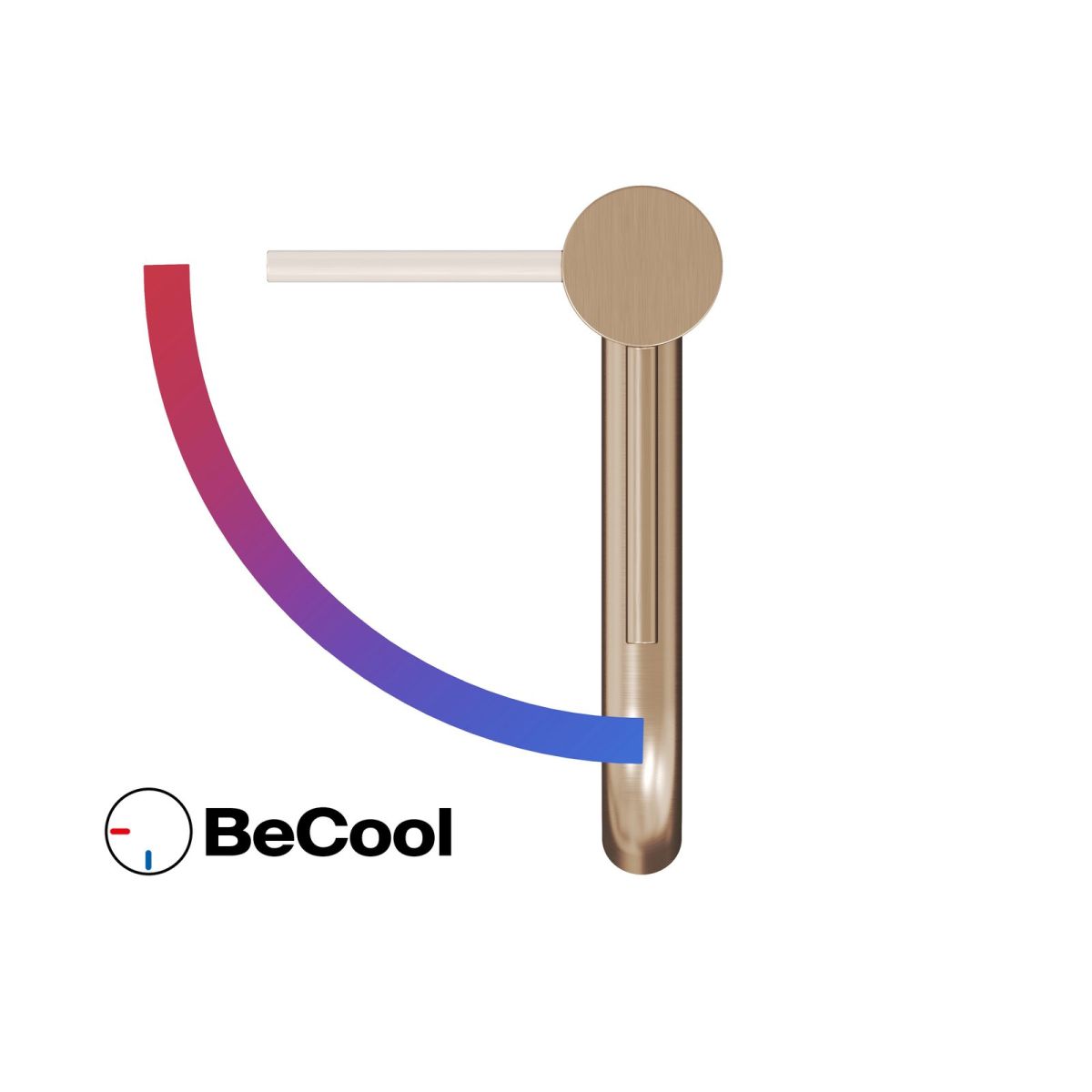 Armaturen mit BeCool-Funktion sparen Warmwasser und damit Energie. Wie das? Der Hebel der Armatur beginnt in der Mittelstellung und aus dieser Position fließt nur kaltes Wasser. Bei Standardarmaturen wird in dieser Position bereits warmes Wasser zum kalten Wasser hinzugefügt. Und das oft unnötigerweise. Beim kurzen Händewaschen kommt das warme Wasser gar nicht erst aus dem Wasserhahn.
