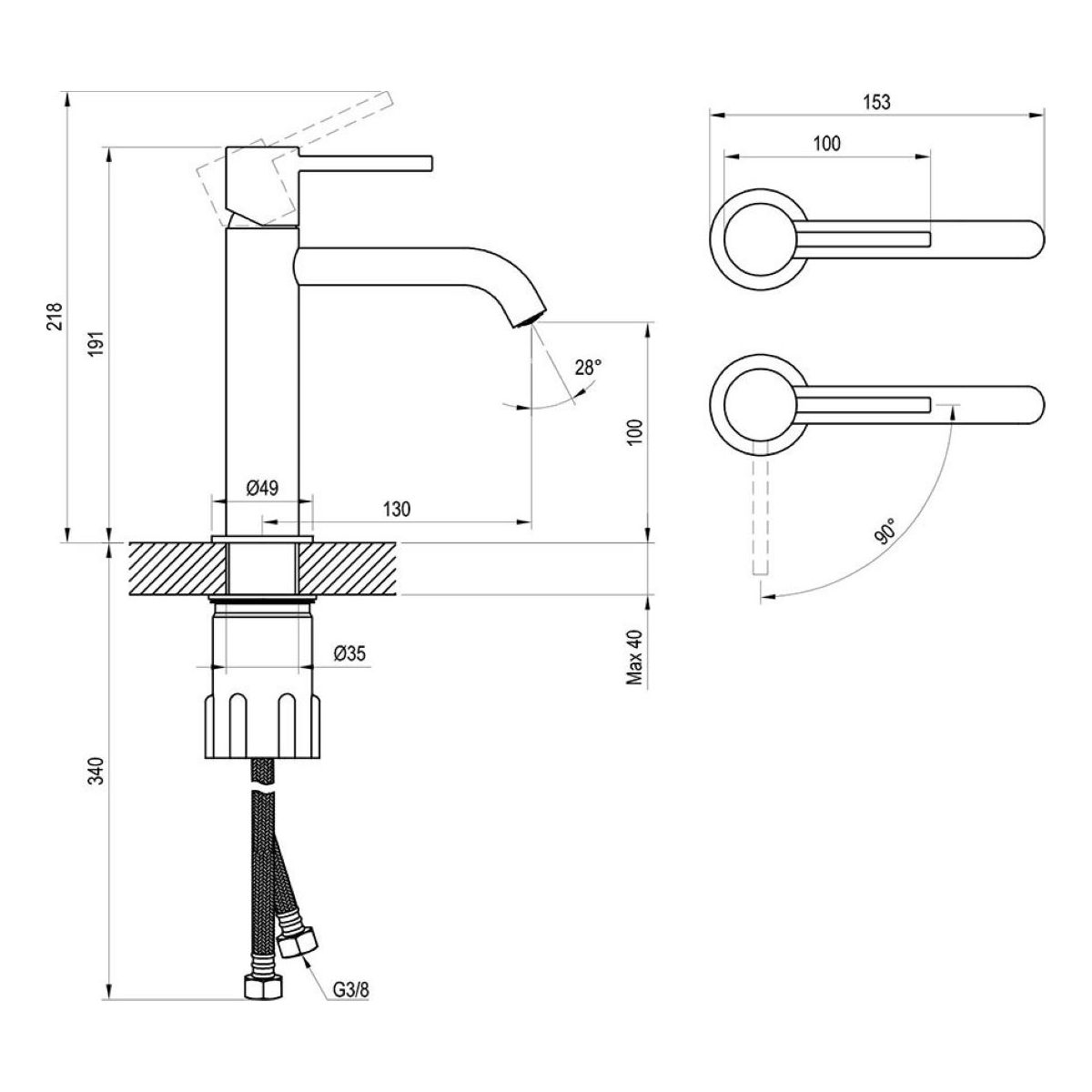 - Anschlussschläuche: flexibel 450 mm, Durchmesser DN6, G3/8