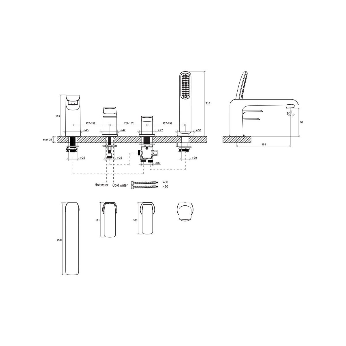 Für die Installation am Wannenrand vorgesehen. Das Produkt besteht aus vier designmäßig aufeinander abgestimmten Elementen. Die sanft verlaufende Linie des Auslaufs bildet eine perfekte Harmonie mit dem Wasserstrahl. Die Armatur mit berührungsempfindlicher Steuerung sorgt für eine perfekte Regulierung des Wasserstrahls und der Wassertemperatur. Das dritte Element sorgt zuverlässig für einen bequemen Wechsel zwischen Auslauf und Dusche. Das letzte Element der Armatur ist eine ausziehbare Handbrause, die durch ihre modische Form besticht.