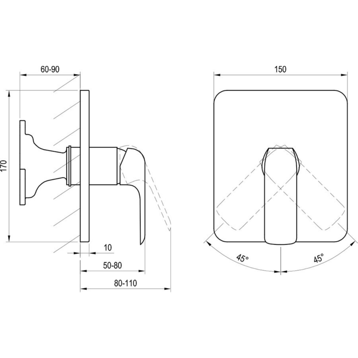 - Empfohlen: für Duschkabinen mit einer Handbrause oder Badewannen mit Überlauf ohne Möglichkeit zum Anschluss einer Dusche