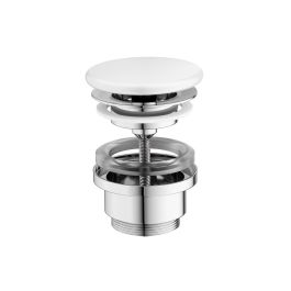 Fester Waschbeckenstopfen Flat mit Keramikventil in glänzendem Weiß. Für Waschbecken ohne Überlauf.