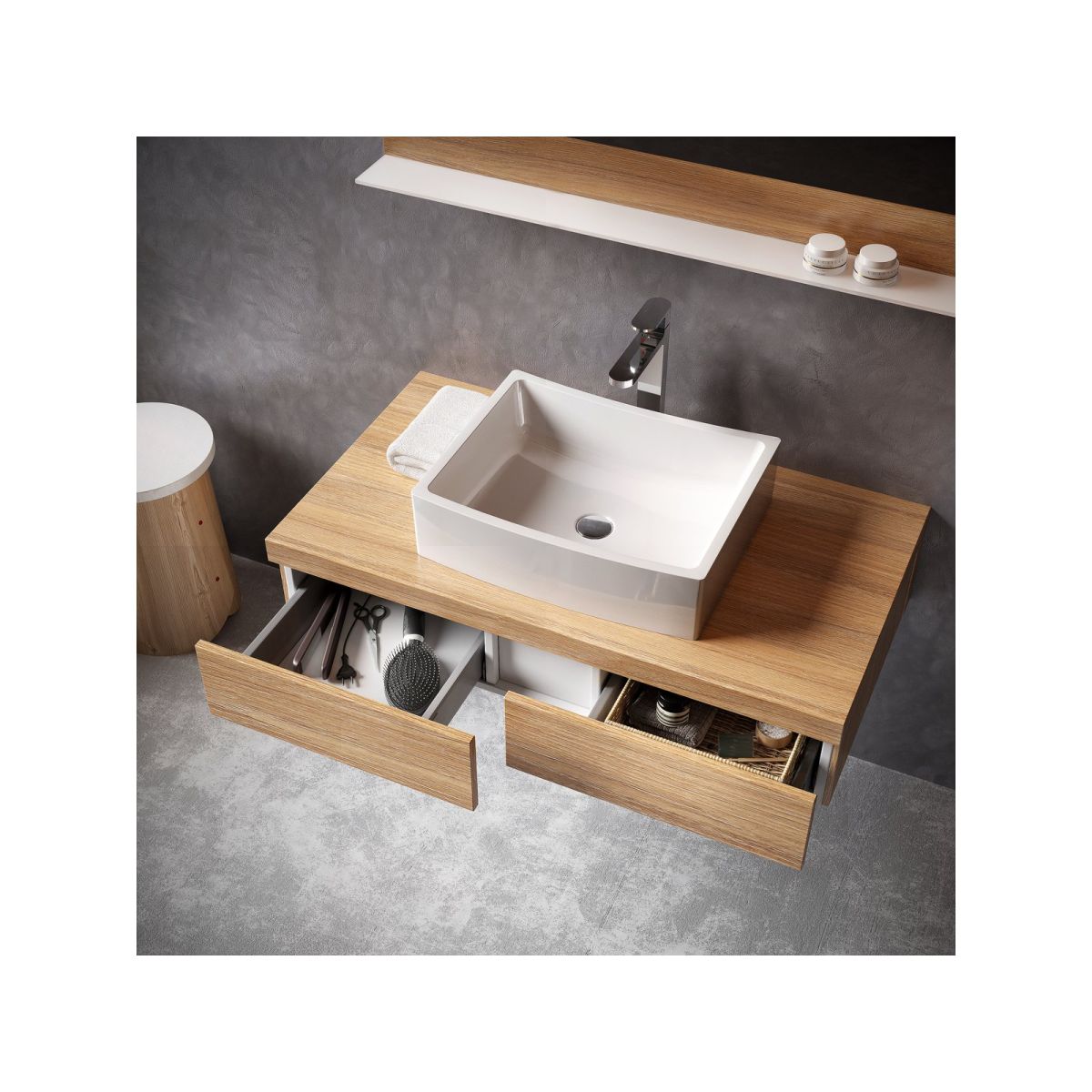 Der Waschbeckenschrank Formy ist für Aufsatzwaschbecken vorgesehen. Der 100 cm lange Schrank ist mit zwei Schubladen ausgestattet. Er wird montiert geliefert, einschließlich Montageset (Schrauben, Scharniere, Abdeckkappen). Der Schrank wird an der Wand montiert. Für eine umfassende Lösung und ein harmonisches Badezimmerdesign empfehlen wir, den Waschbeckenschrank Formy mit anderen Produkten aus dem Formy-Konzept, Armaturen und anderen Ravak-Produkten zu kombinieren.