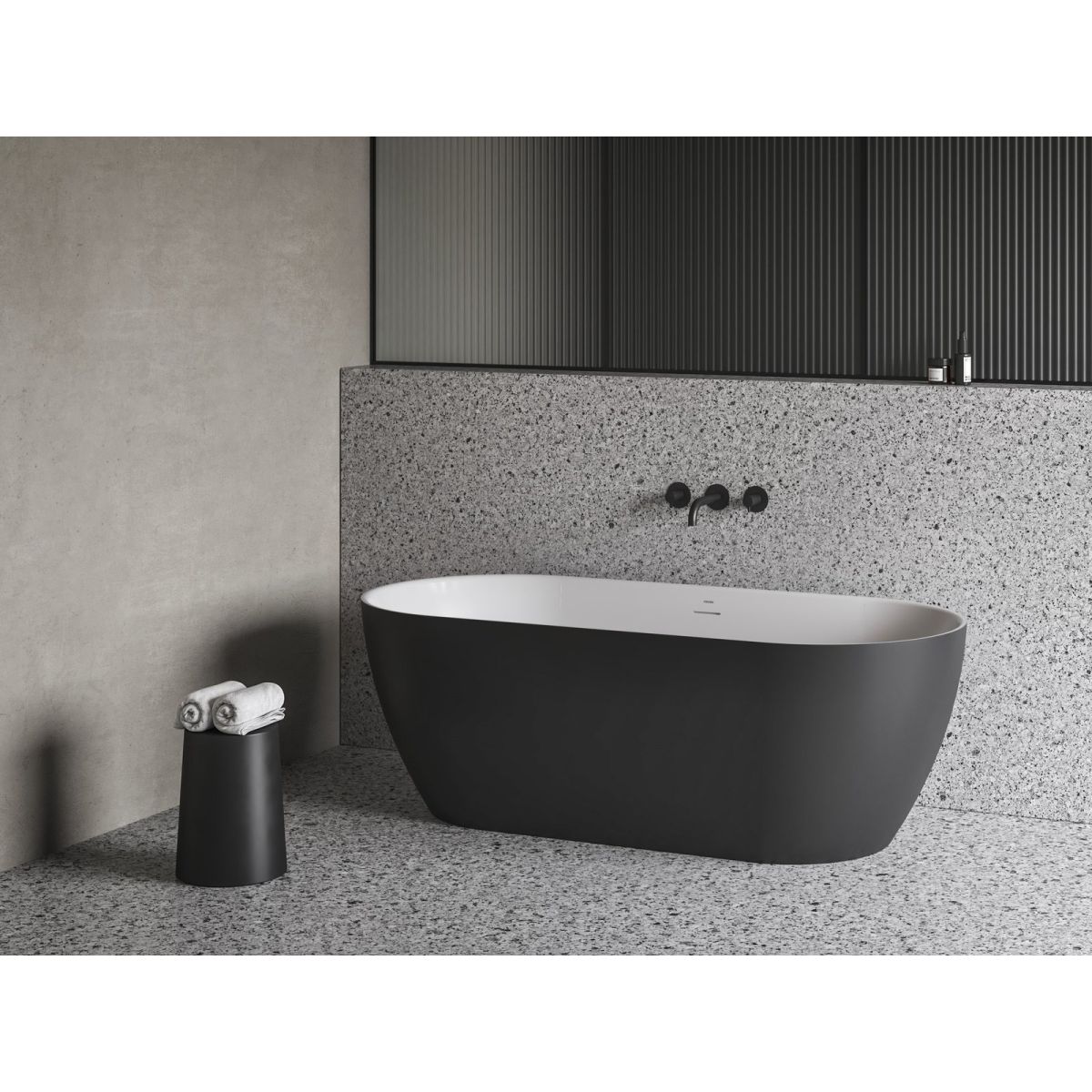Entspannung ohne Grenzen. Die modernen, sanft abgerundeten Formen der freistehenden Badewanne Freedom O Tec bringen Harmonie und unvergesslichen Komfort in Ihr Badezimmer, da sie sich perfekt an die Anatomie des Körpers anpassen. Mit verengter Oberkante. Badewanne in Weiß und Schwarz.