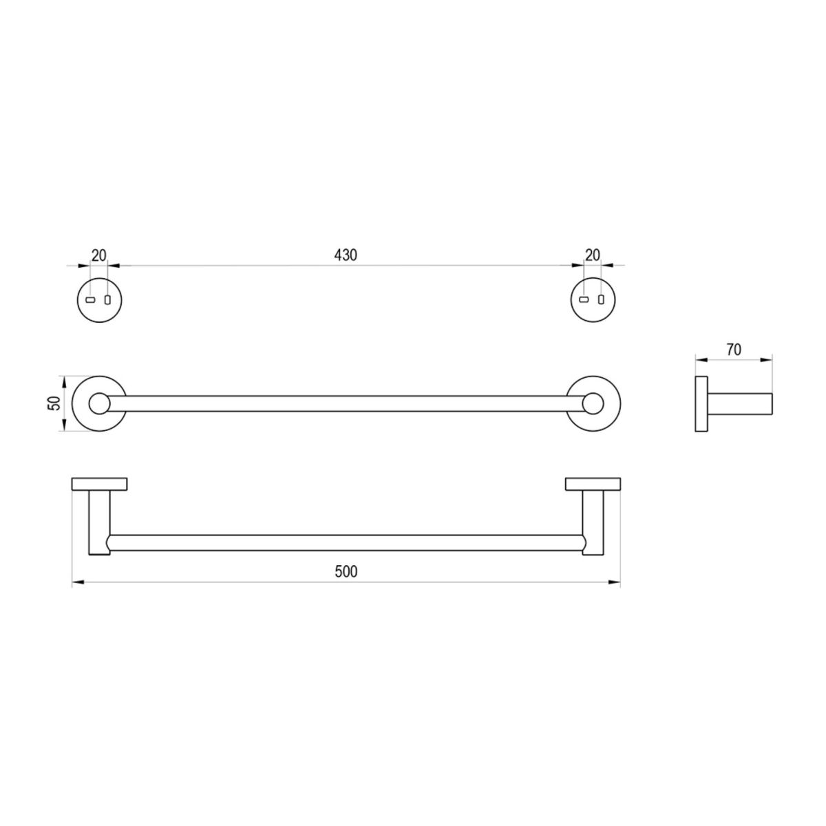 Der Handtuchhalter wird mit vier Dübeln und zwei Metallbefestigungsplatten montiert. Der Abstand zwischen den Schrauben beträgt 20 mm. Das Montageset ist im Lieferumfang enthalten.