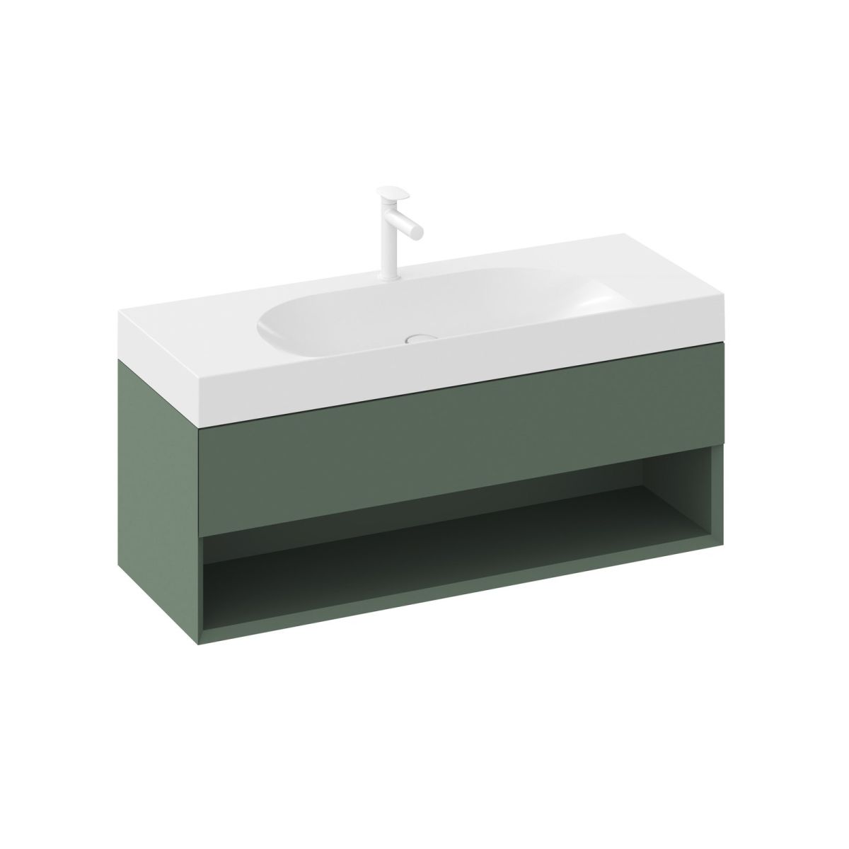 Waschbeckenunterschrank SD Lite in grau-grüner Ausführung.