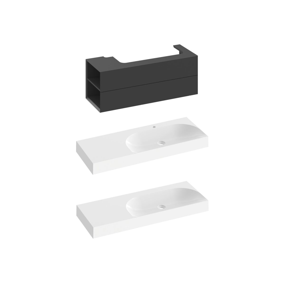 Waschbeckenunterschrank SD Lite in Mattschwarz. Linke Ausführung.