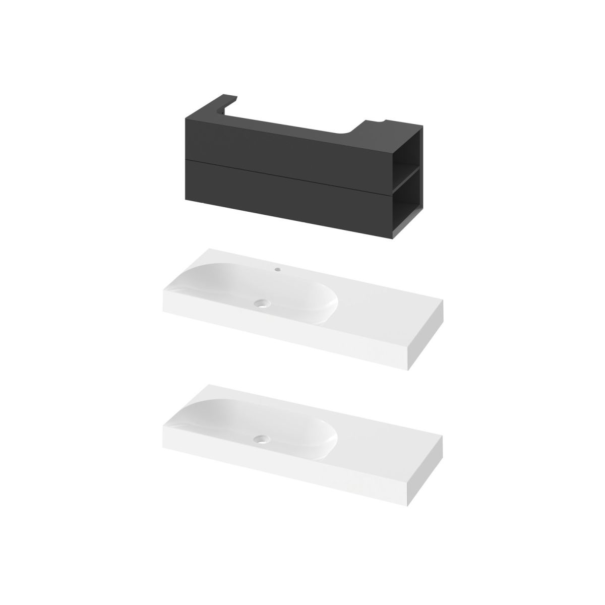 Waschbeckenschrank SD Lite in mattschwarz. Rechte Ausführung.