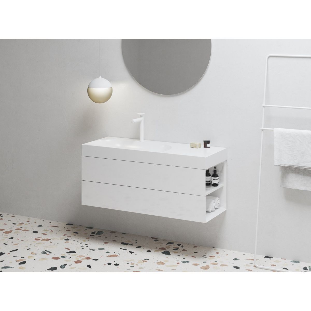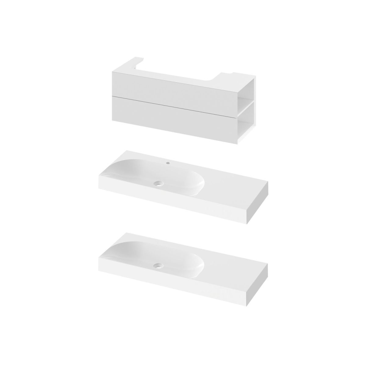 Waschbeckenschrank SD Lite in weißer Hochglanzausführung. Rechte Ausführung.