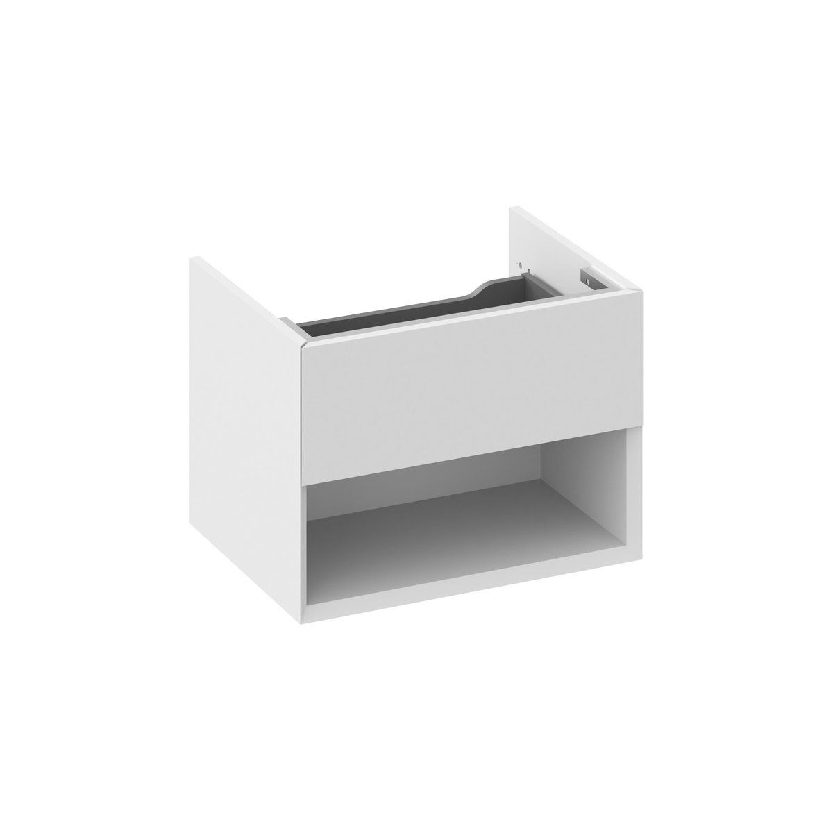 Der Waschtischunterschrank SD Lite 60 ist für die Waschbecken Lite 60 und Lite 60/45 L/P vorgesehen. Er ist mit einer vorderen Schublade und einem Regal ausgestattet. Die Schublade lässt sich durch Ziehen an der Unterkante der Front öffnen. Wird montiert mit Montageset (Schrauben, Scharniere, Dübel) geliefert. Der Schrank wird an der Wand montiert.