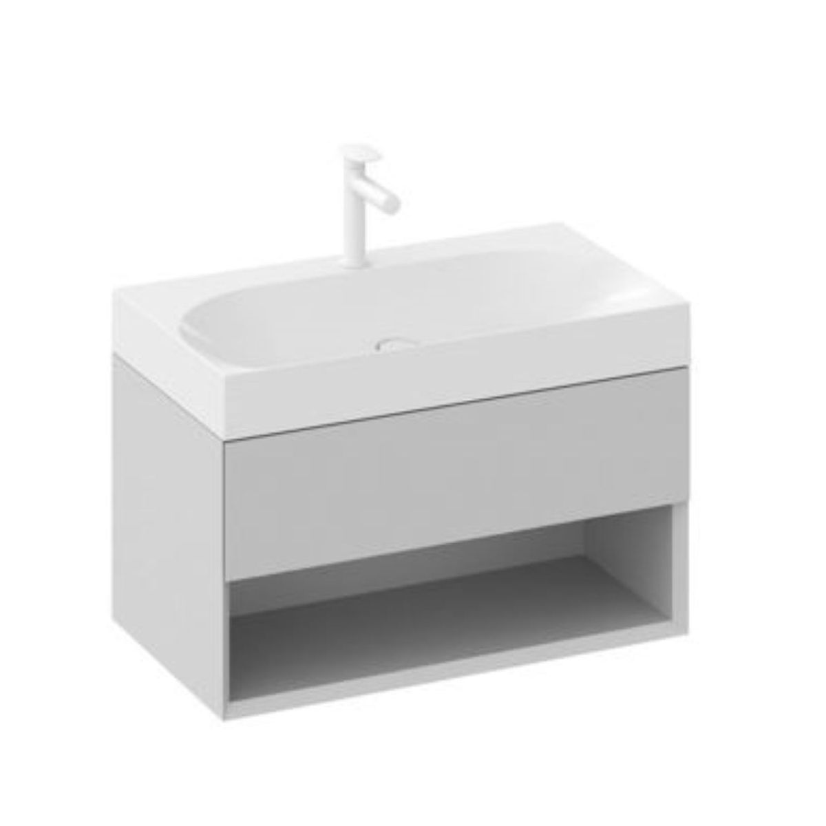 Der Waschtischunterschrank SD Lite 80 ist für die Waschbecken Lite 80, Lite 80/45, Lite 80/45 L/P und Lite 80/60 L/P vorgesehen. Er ist mit einer vorderen Schublade und einem Regal ausgestattet. Die Schublade lässt sich durch Ziehen an der Unterkante der Front öffnen. Er wird montiert mit einem Montageset (Schrauben, Scharniere, Dübel) geliefert. Der Schrank wird an der Wand montiert.