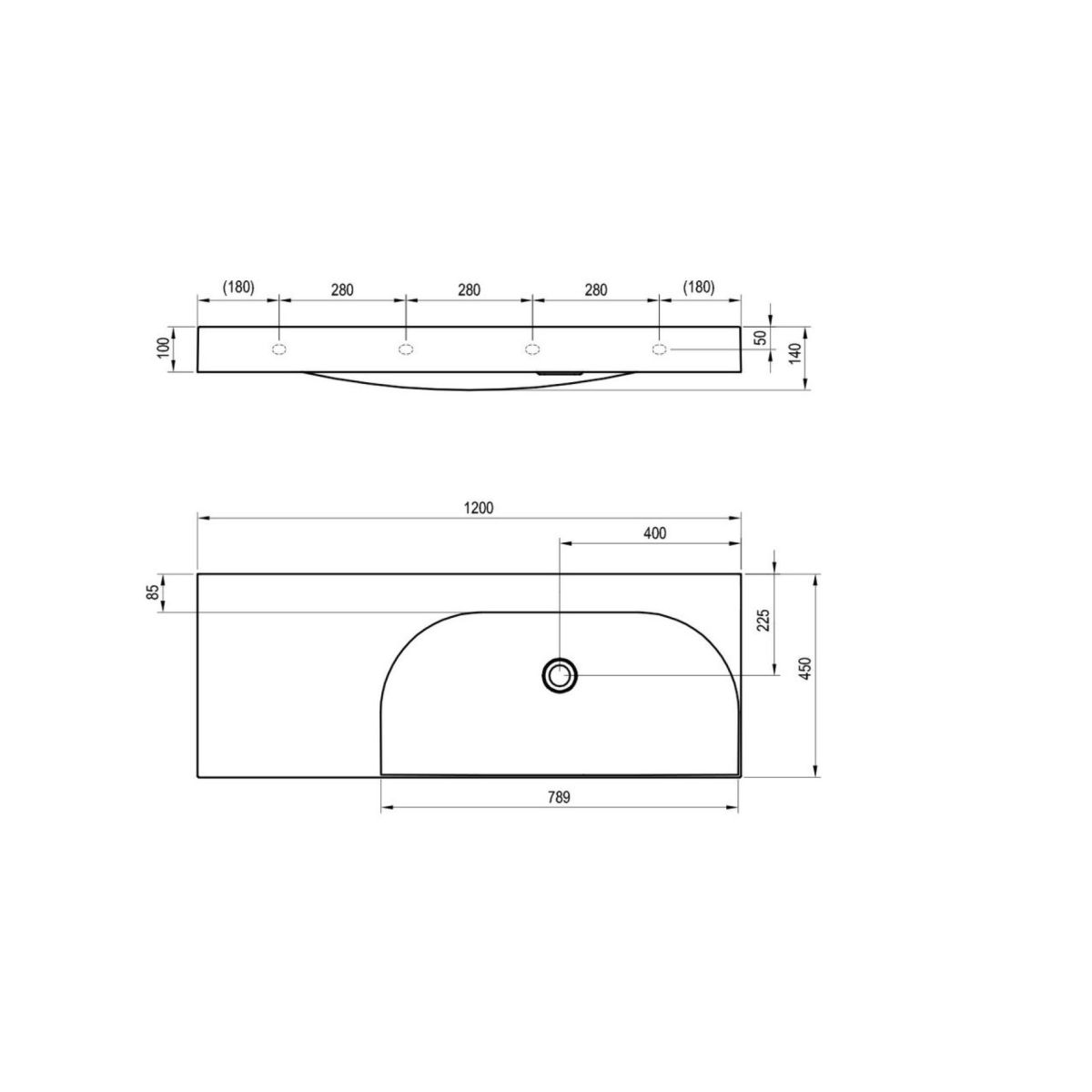 Waschbecken Lite 120/80 L mit Stauraum auf der linken Seite. Das Waschbecken ist nicht mit einem Überlauf ausgestattet. Um ein Überlaufen zu verhindern, muss daher ein fester Waschbeckenständer verwendet werden. Das Waschbecken ist für die Kombination mit einer Unterputz-Waschtischarmatur vorgesehen. Im Lieferumfang ist ein Montageset (Verbindungsdübel, Schrauben usw.) enthalten. Es kann an der Wand montiert oder mit einem Waschtischunterschrank SD Lite 120 oder SD Lite 120 L ergänzt werden.